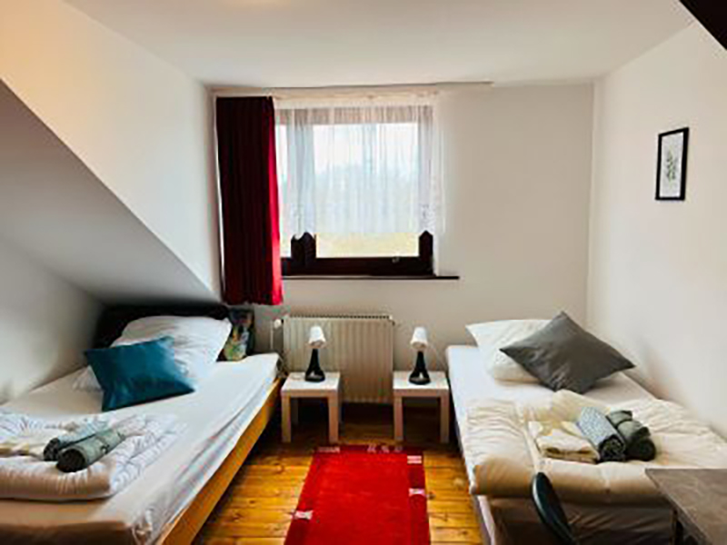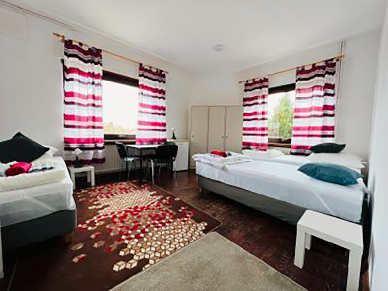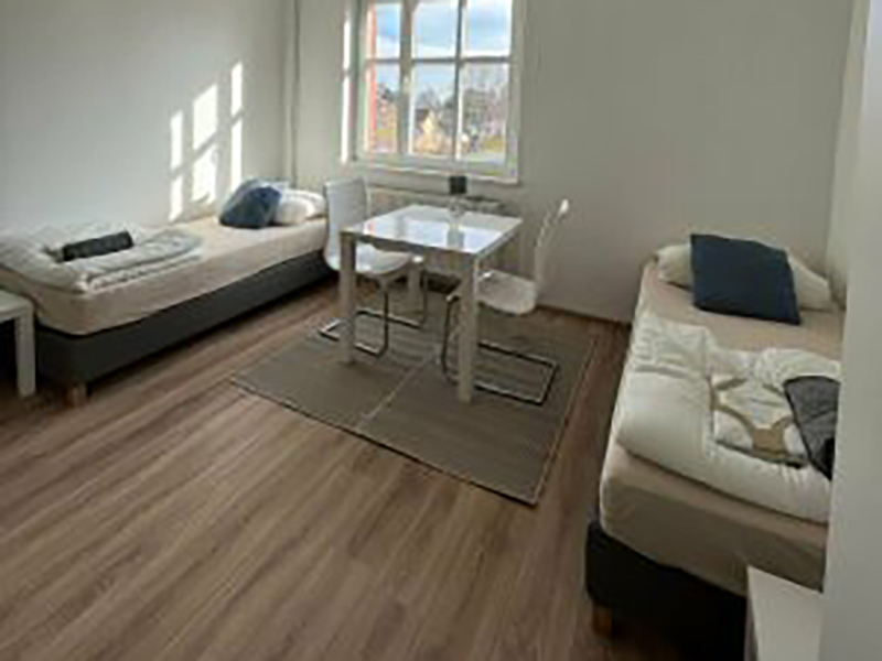 Die Zimmer sind ausgestattet mit Bett, Schrank, Nachttisch, Tisch und Stuhl/Stühle. Kissen, Bettdecke, Bettwäsche, sowie Wechsel Bettwäsche wird Ihnen zur Verfügung gestellt. Handtücher sind selbst mitzubringen.